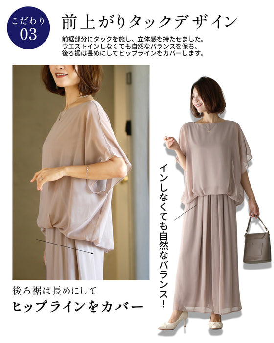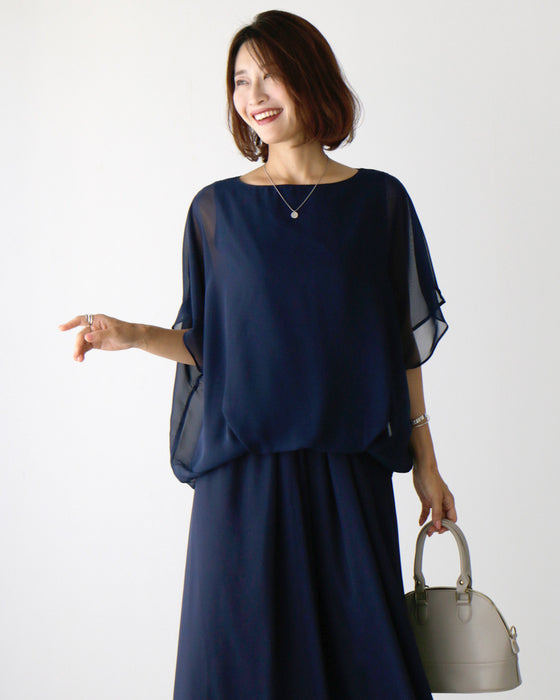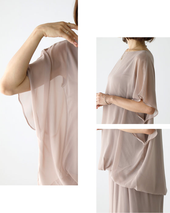 シフォンの重なりと落ち感で美しいラインを作り出します。