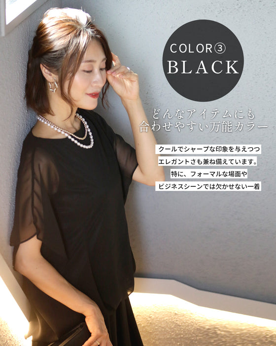 シフォントップス ベージュ ブラック ネイビー 肌色 黒 濃紺 beige black navy 春 夏 秋 透け感 柔らか 軽い レディース ファッション シフォン トップス Ehre style スタイル エーレスタイル 小柄さんもOK Ehrestyle