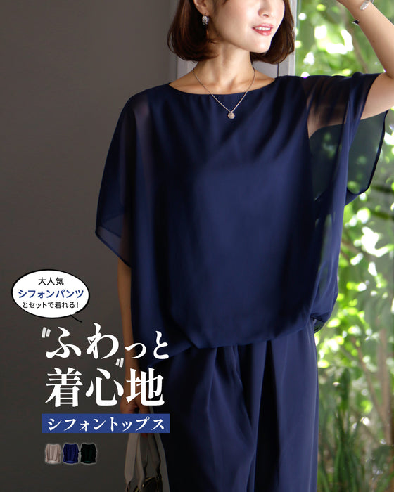 Ehre styleオリジナル 人気シフォンパンツとセットで着れる! 「ふわっと着心地」 シフォントップス
