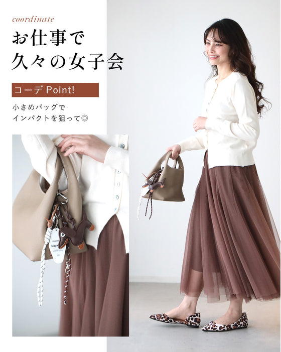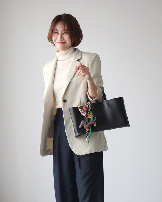 フェイクレザーだから綺麗めのバッグにも馴染み、