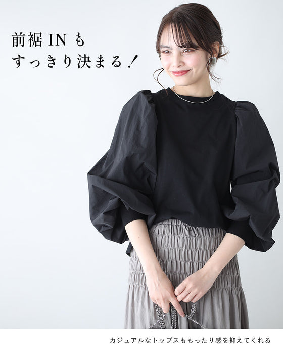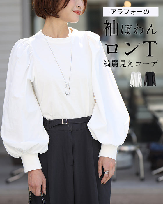 トップス 長袖Tシャツ 袖ボリューム 長袖 Tシャツ ロンT 袖ぽわん ぽわん袖 綺麗見え 可愛い ブラック ホワイト black white 黒 白 フリーサイズ 春 秋 冬 無地 体型カバー 華奢見え レディース ファッション Ehre style スタイル エーレスタイル