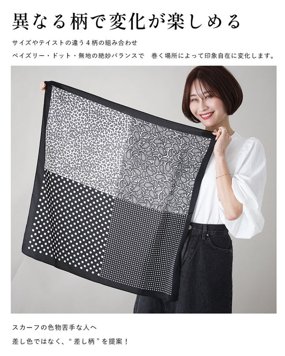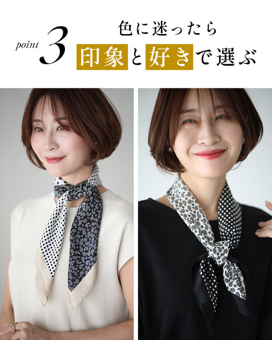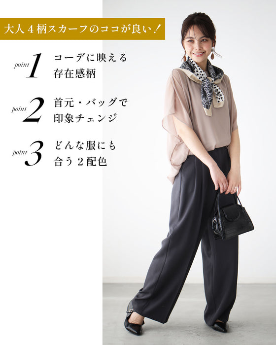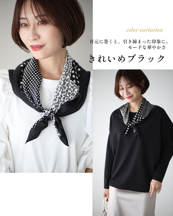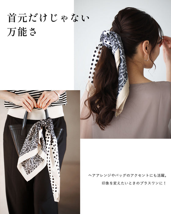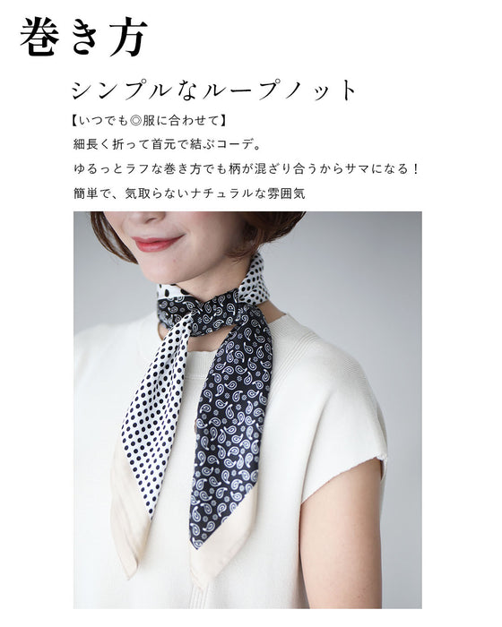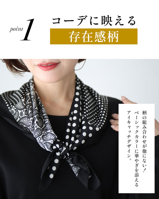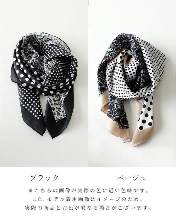 スカーフ 柄スカーフ ペイズリー ドット 印象が変わる ペイズリードット ブラック ベージュ black beige 黒 肌色 きちんと感 コーデに映える ワンポイント ポリエステル フリーサイズ レディース ファッション Ehre style スタイル エーレスタイル