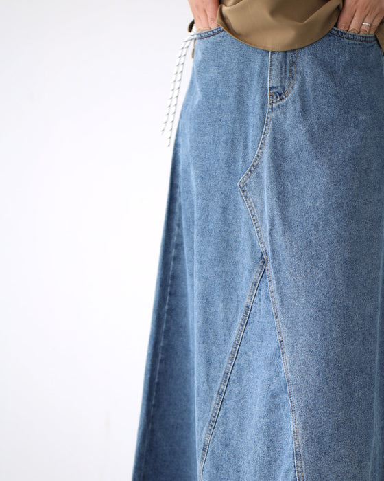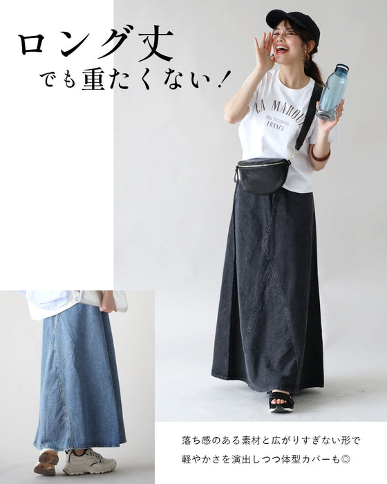 デニムスカート スカート ロングスカート バックウエストゴム 後ろゴム M L ブルー ブラック blue black 青 黒 オールシーズン ジーンズ デニム カジュアル シンプル きれいめ 着回し定番 オシャレ レディース ファッション Ehre style スタイル エーレスタイル