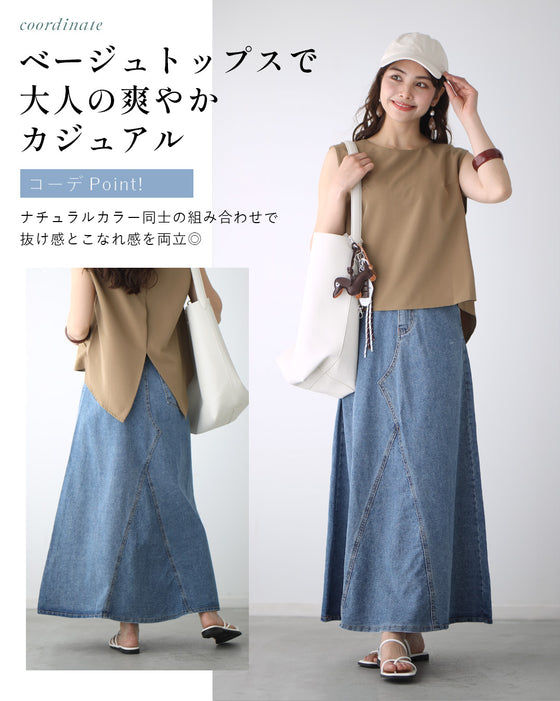 「ノースリーブ×ブルーデニムコーデ」