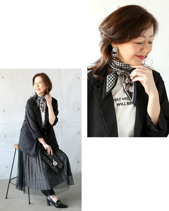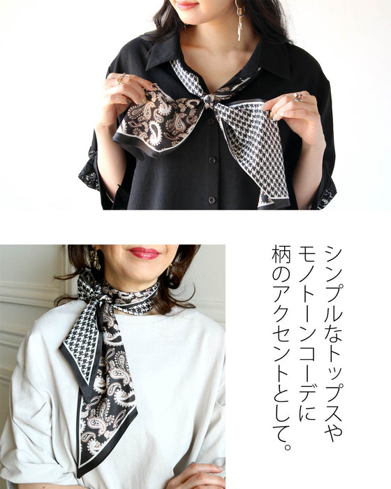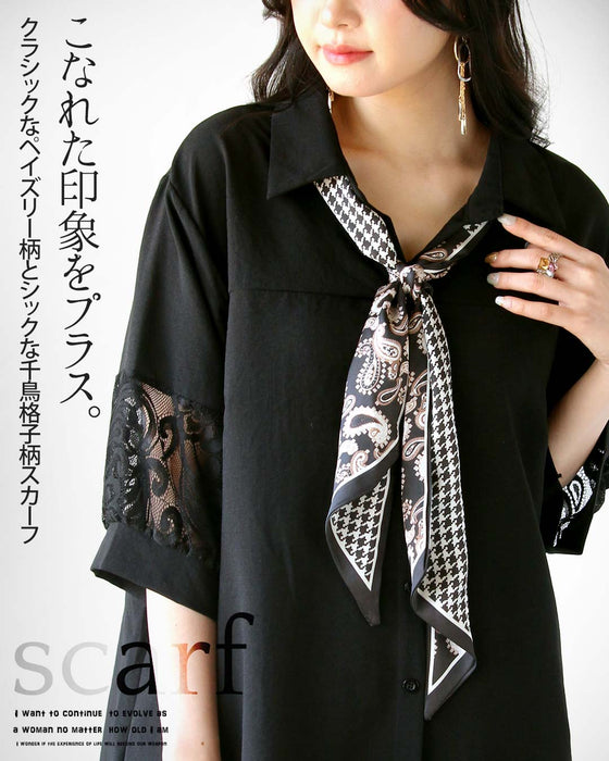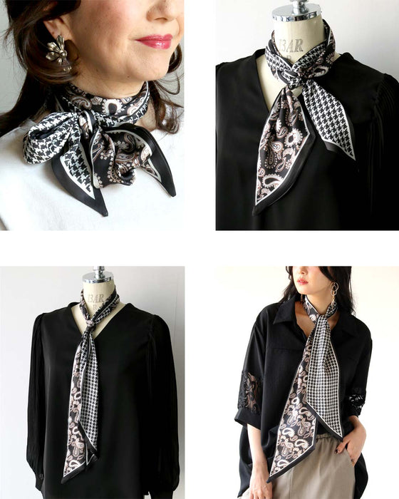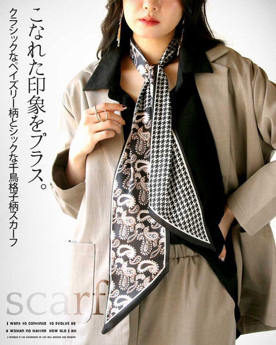 こなれた印象をプラス。 クラシックなペイズリー柄とシックな千鳥格子柄スカーフ