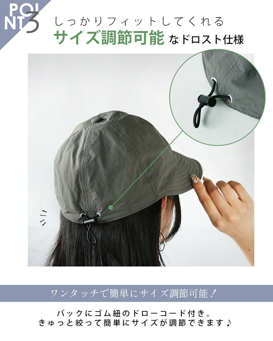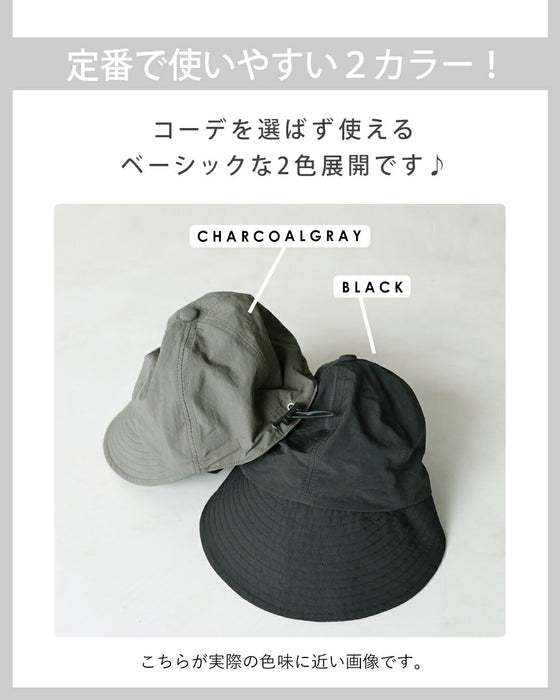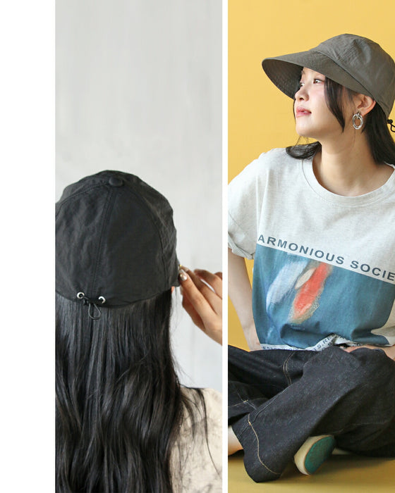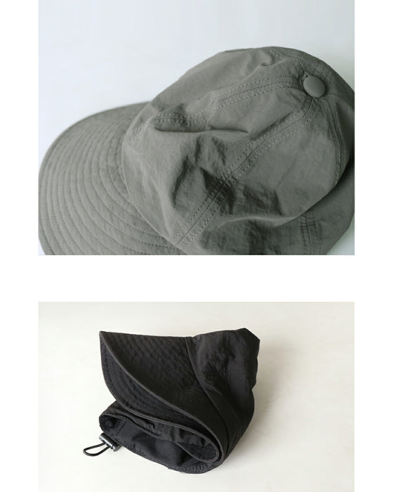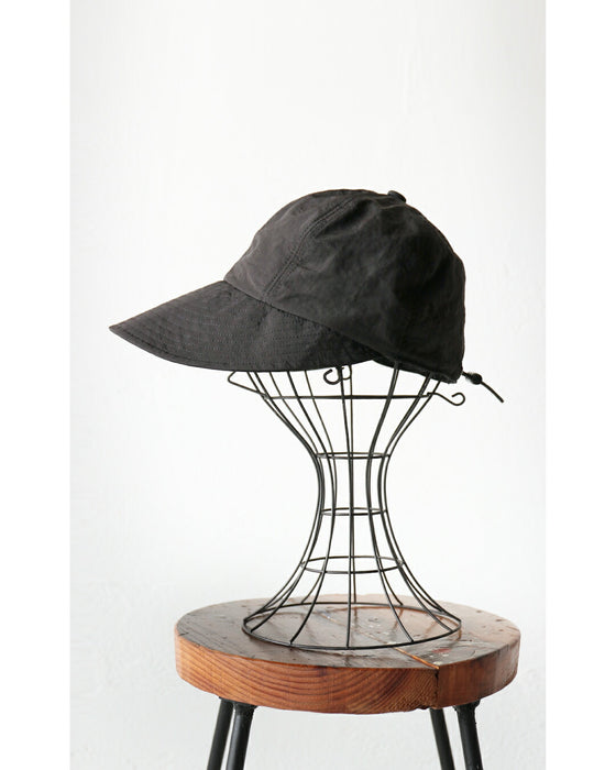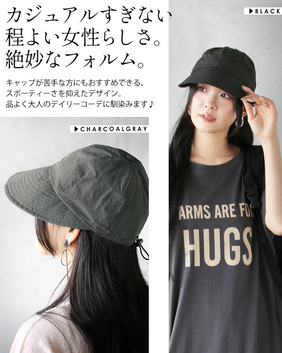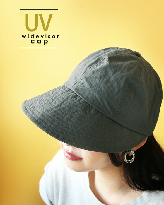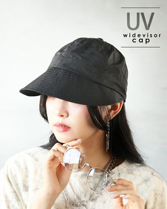 顔まわりをしっかりカバーする、ワイドバイザー仕様のキャップ。