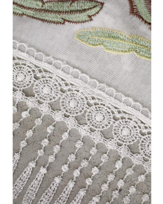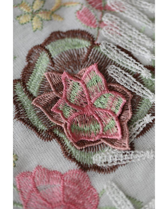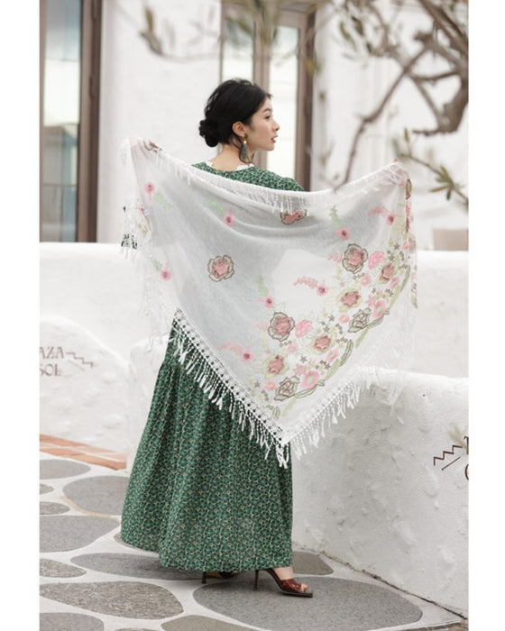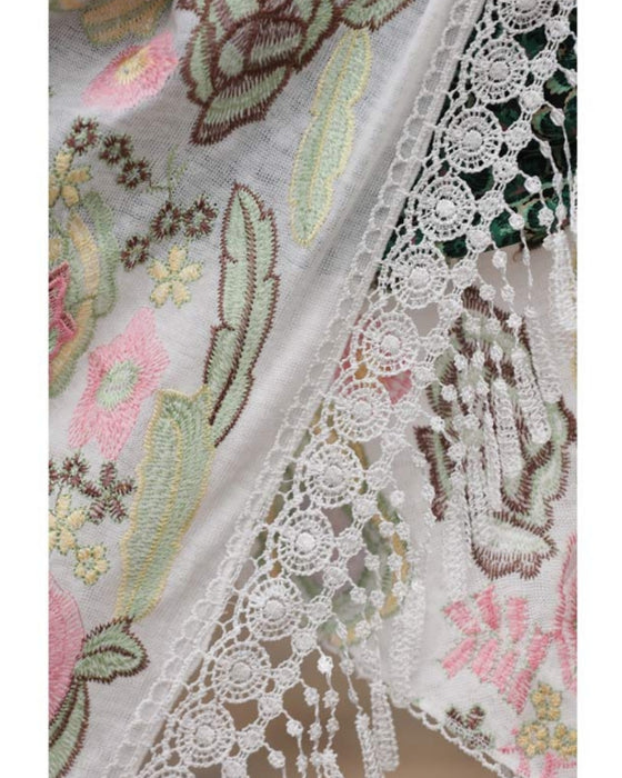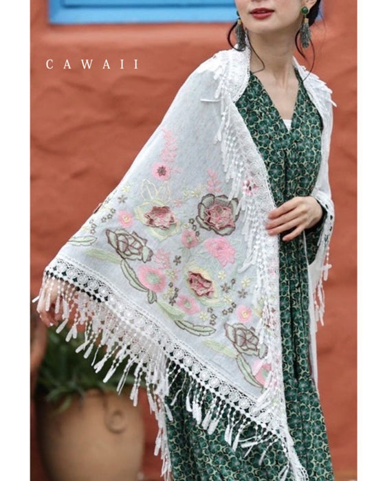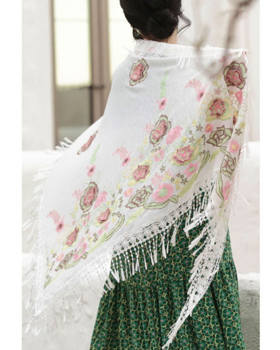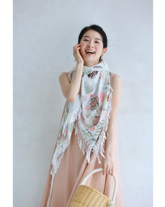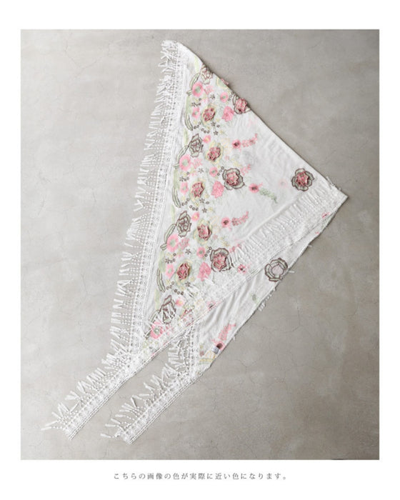 立体の花咲く春色刺繍の三角ストール
