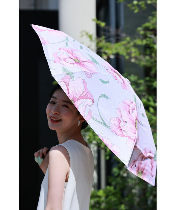 初夏に花開く絢爛豪華な大輪花のピオニー柄が人々を魅了して目を引きます。日差しの強い時に日傘をさすだけでUV対策もバッチリ♪
