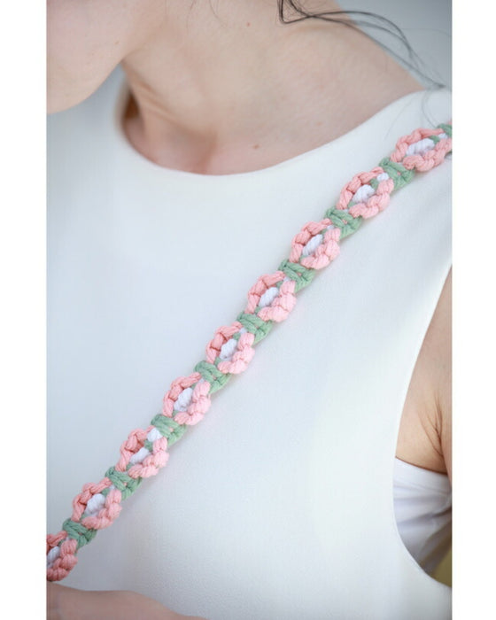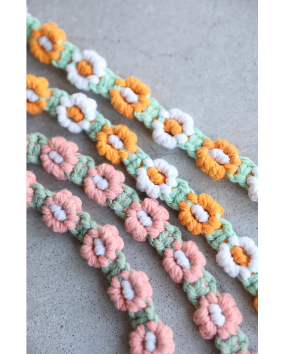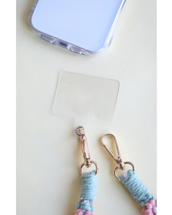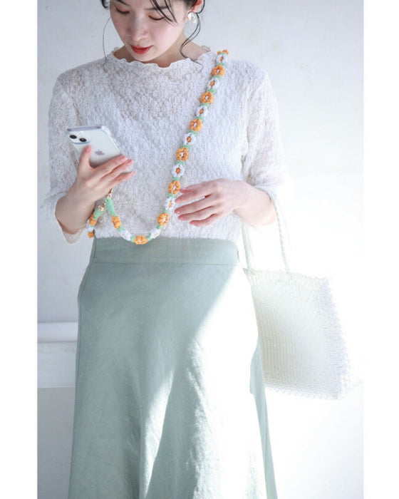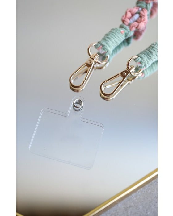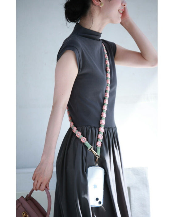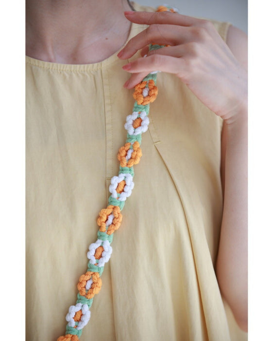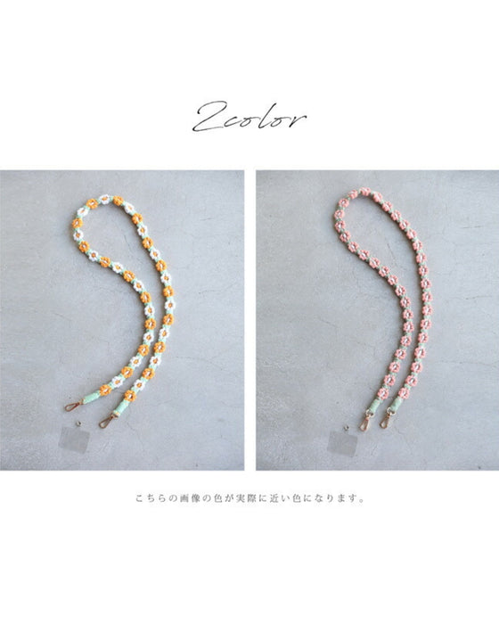 (クリアホルダー付き)編み込みお花のロングストラップ