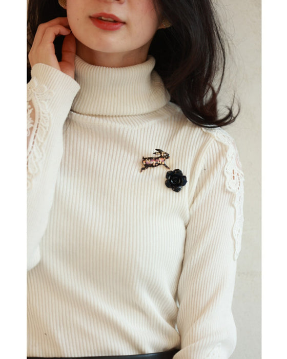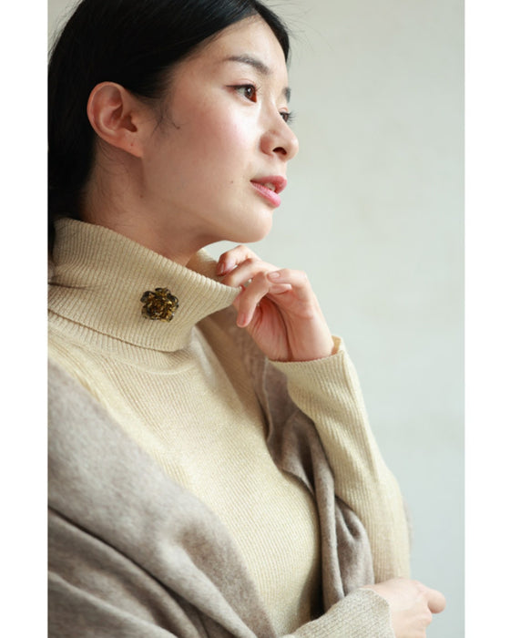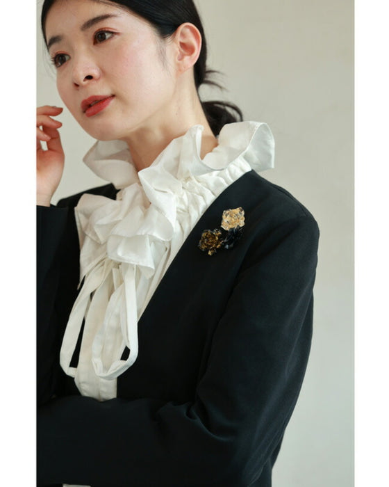 ■品のあるバラのブローチがコーディネートのアクセントに