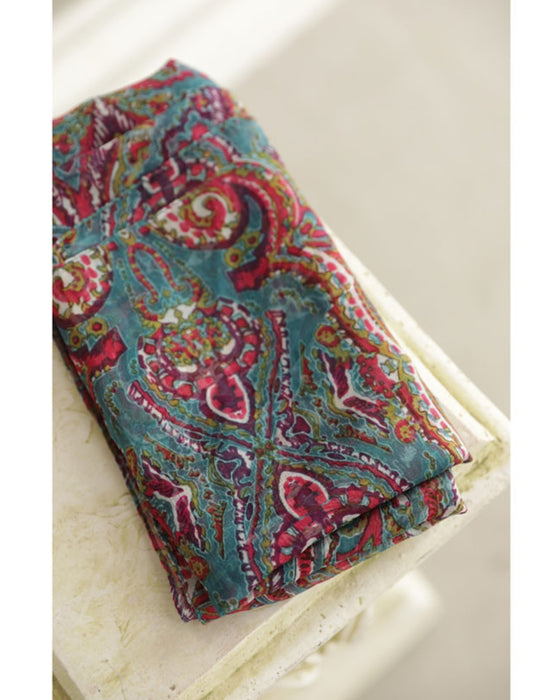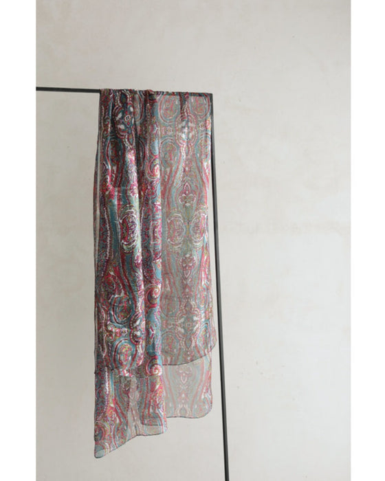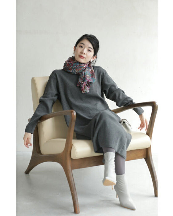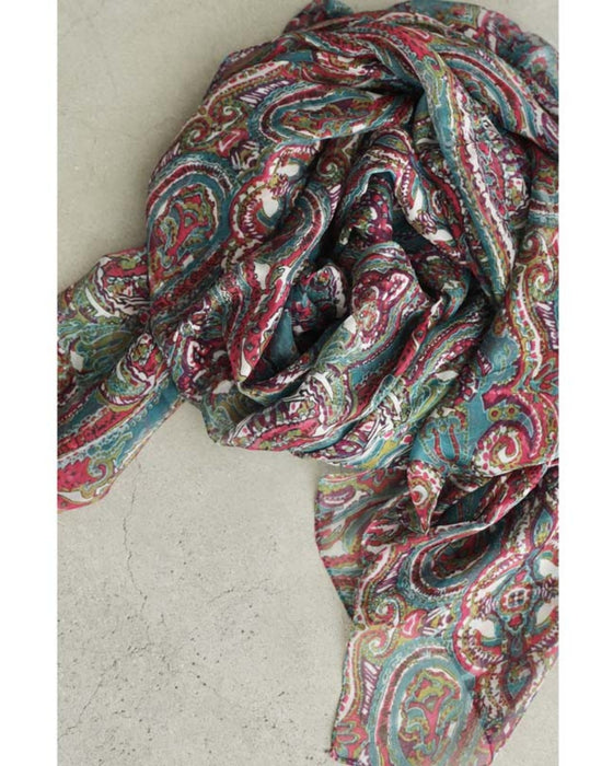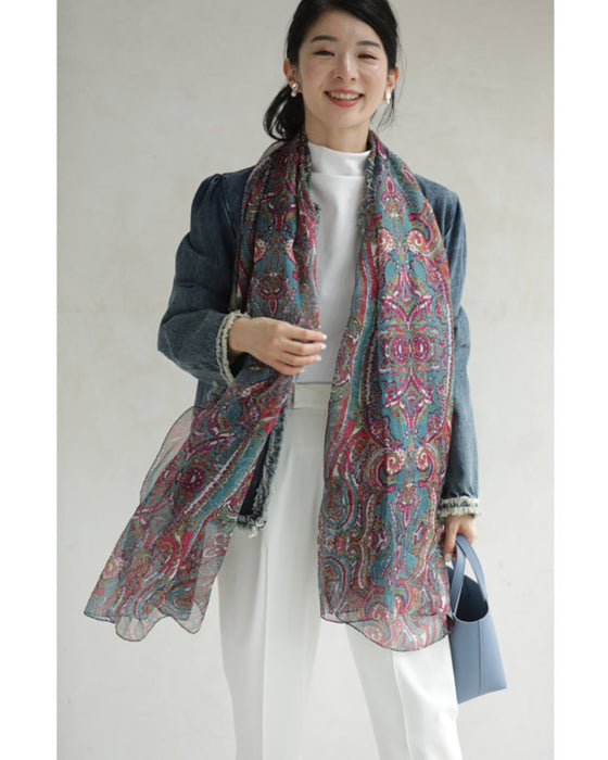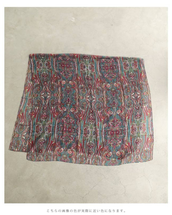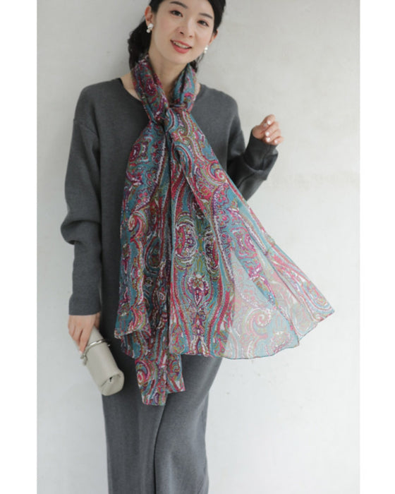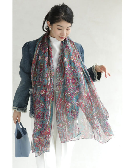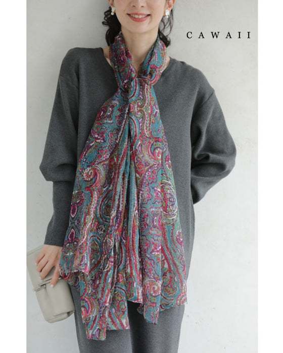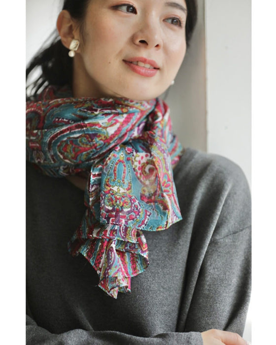 コーディネートのポイントに映える色彩アートの大判スカーフ