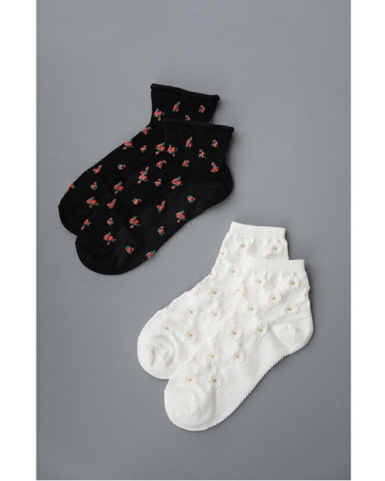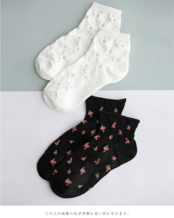 可愛い小花柄ショートソックス2点セット 返品・交換不可