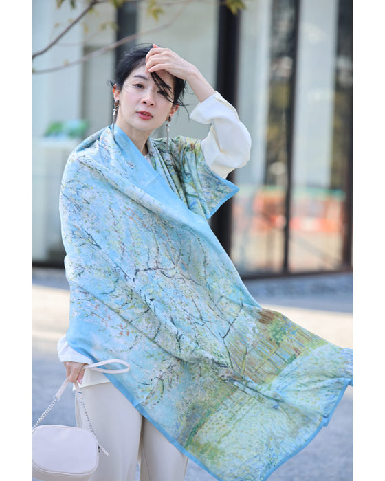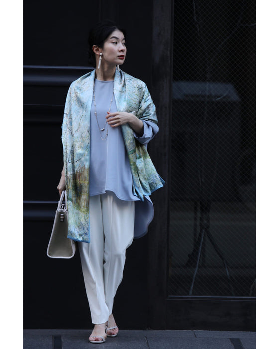 春の訪れを感じさせる、軽やかで華やかなビッグストール。心地よい春風をまとったような爽やかな模様が魅力的で、シンプルなコーディネートにアクセントを加えます。繊細な色使いや絶妙なデザインが、どんなスタイルにもなじみつつ、洗練された雰囲気を演出。