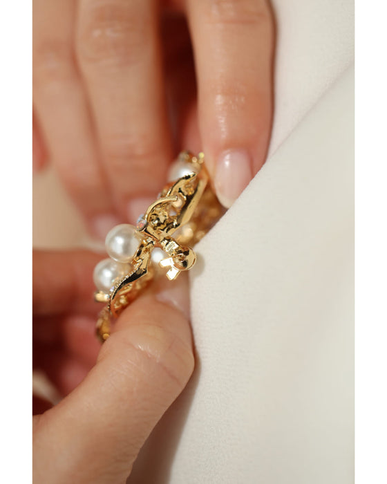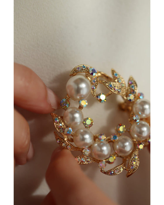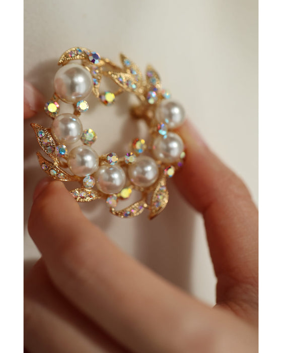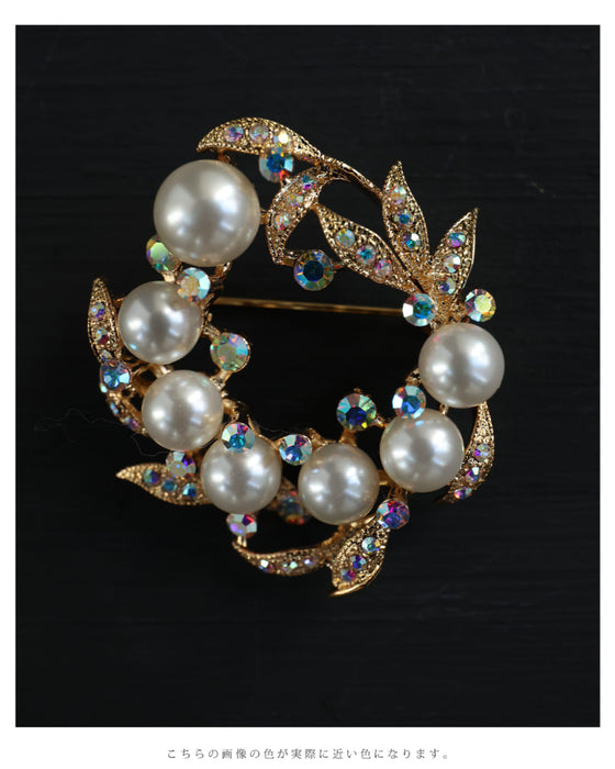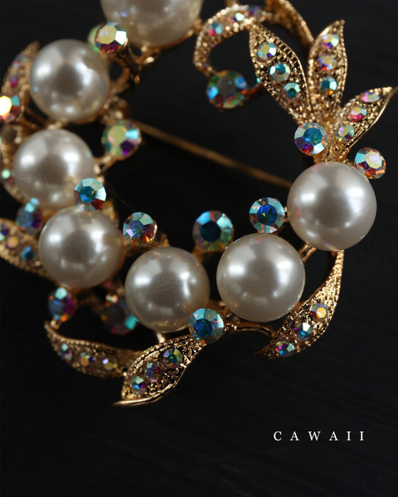 オーロラビジューとパール艶めくリースブローチ