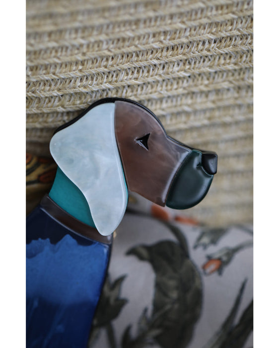 どこかユーモラスな表情が魅力のワンちゃんブローチ。コーディネートに可愛いアクセントを添えて、装いにさりげない個性をプラスしてくれますね。