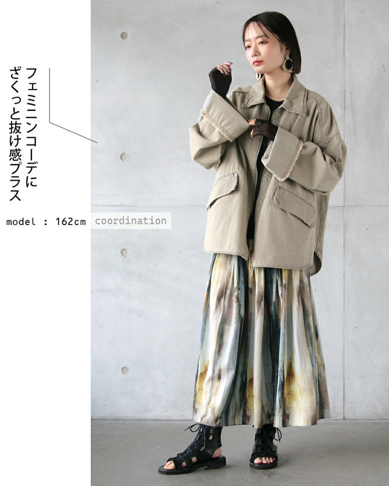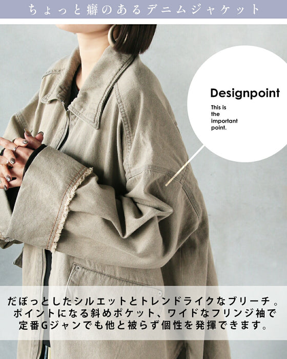 ゆるだぼっとしたシルエットでざくっと羽織りやすくラフ感を演出。トレンドライクなブリーチ感もお洒落♪ ポイントになる斜めポケット、ワイドなフリンジ袖で定番Gジャンでも他と被らず個性を発揮できます。