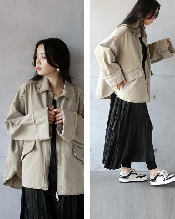 ■ダブルジッパーで着こなしに幅を持たせられる、ゆるぶかっとストレスなく着られるオーバーサイズ。
