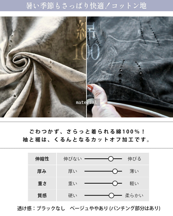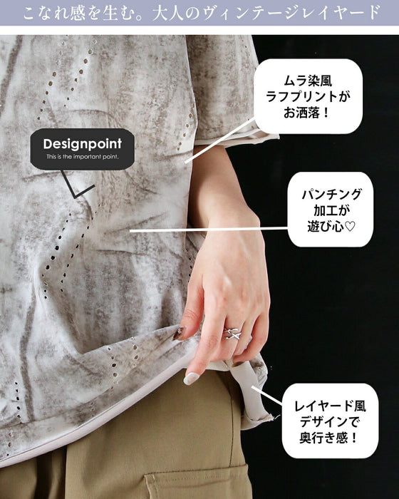 ビンテージライクなプリント柄とパンチング加工が目を惹く、ニュアンス感たっぷりの素材。
