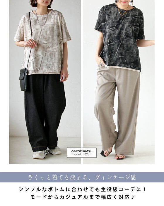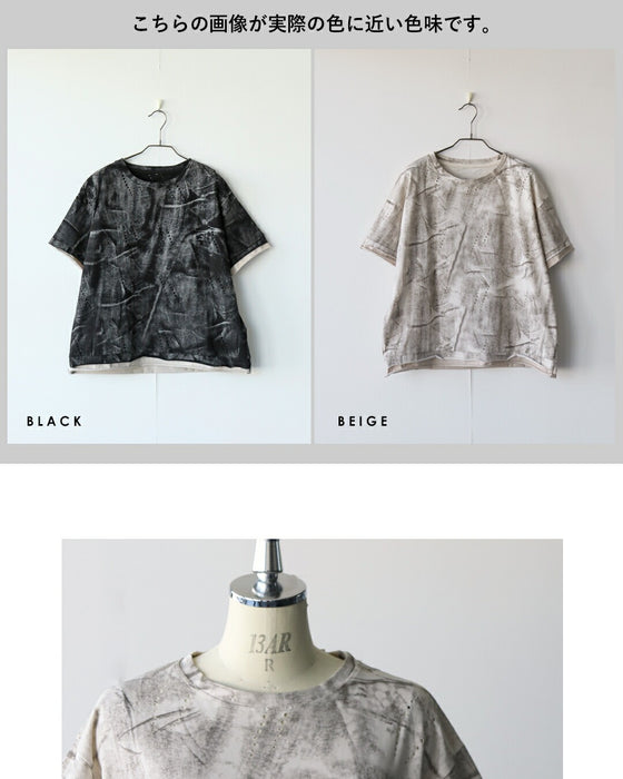 味わいのある色ムラやかすれた表情が、ありきたりなTシャツとは一線を画す仕上がりに。柔らかく、肌当たりの良い生地で、気負わず着られるのも魅力です。