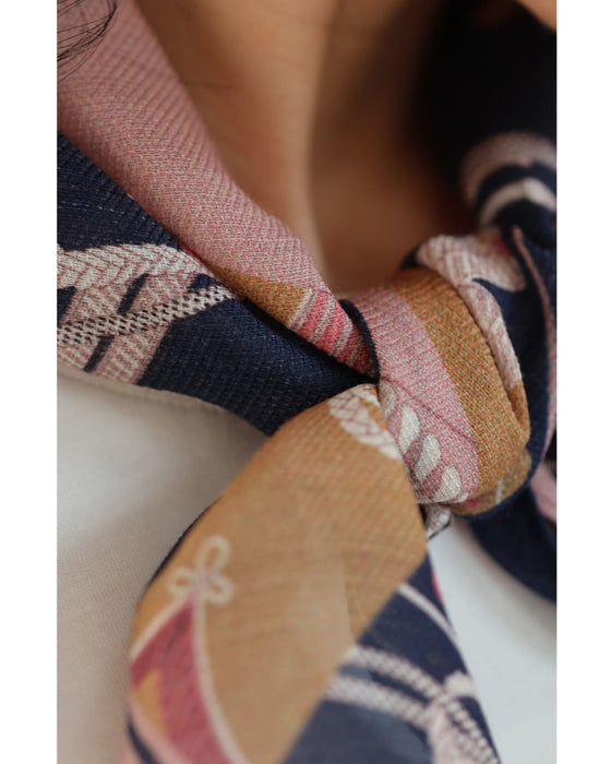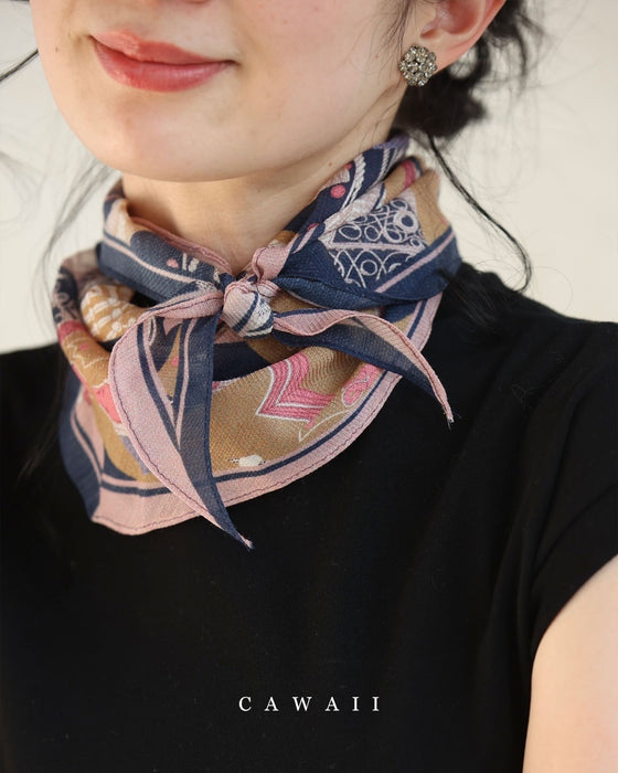 コーディネートの差し色に。エレガント柄菱形スカーフ