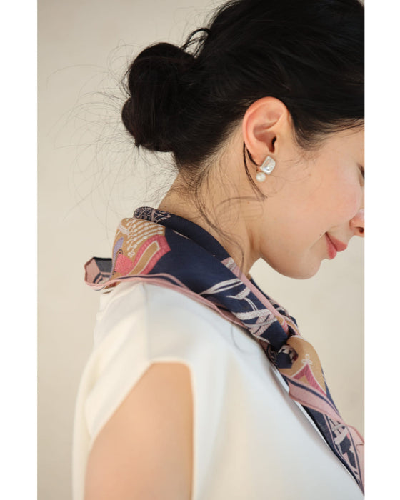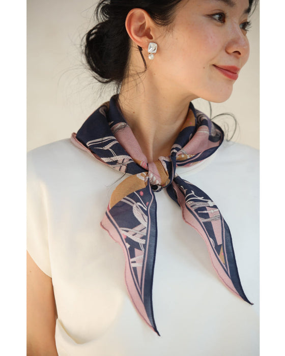 上品さと華やかさを兼ね備えた、大人のためのエレガントなスカーフ。シンプルなトップスやワンピースに合わせるだけで、コーディネートをワンランクアップ。首元だけでなく、バッグのハンドルに巻いたり、ヘアアレンジに取り入れたりと、多彩なアレンジを楽しめるのも嬉しい特徴です。