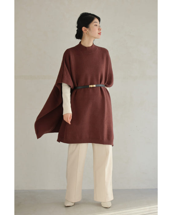 しっとりと上品に揺らめくニットポンチョ(ベルト付き)
