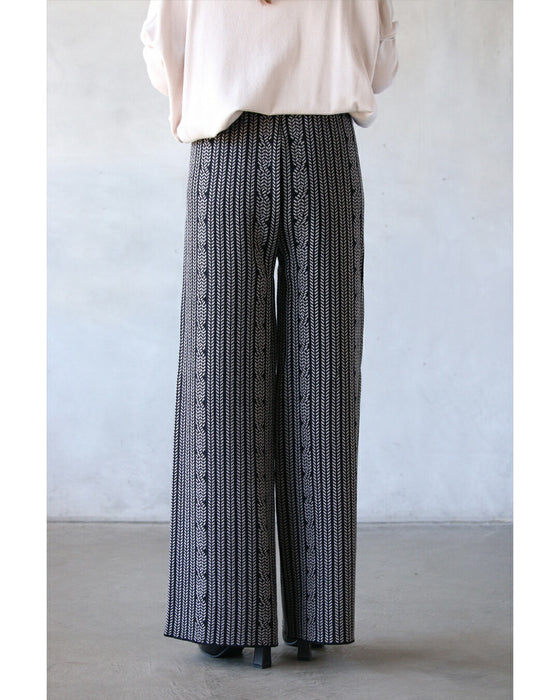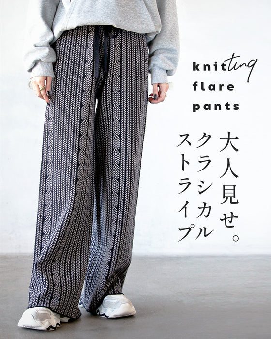 スマート見せにも効果◎ もっちりニットのフレアパンツ。