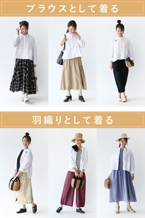 体型カバー【毎日着る麻服トップス】羽織 白 ブラウス シャツ 長袖 アウター リネン ホワイト 定番 レディース カジュアル かわいい 個性的 どこにもない ゆったり 30代 40代 50代 60代 sanpo【b08817od】