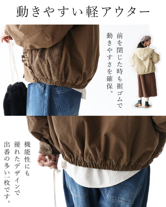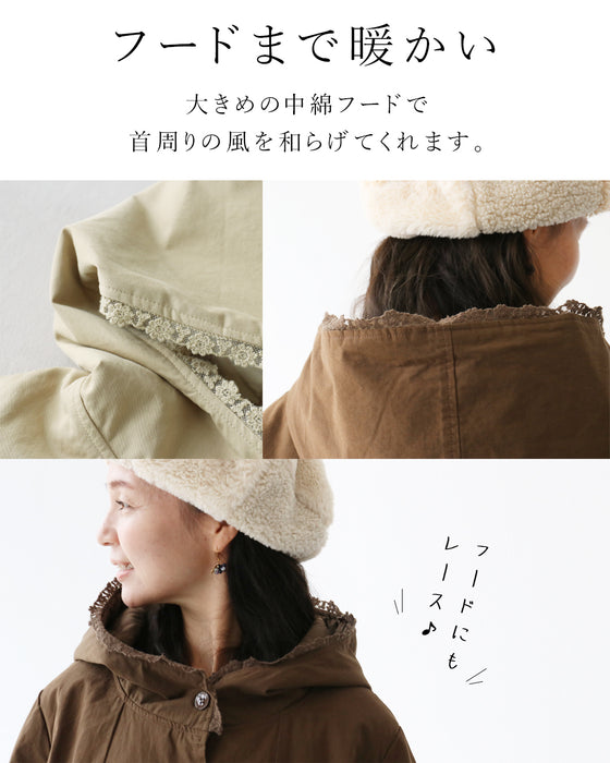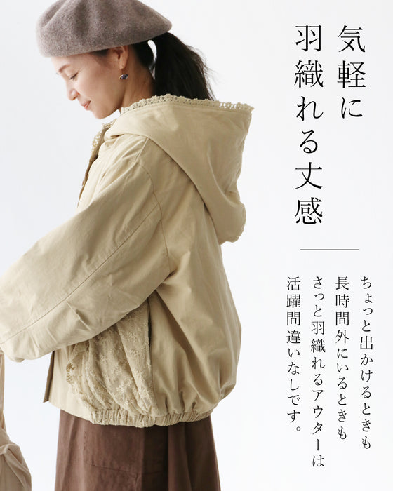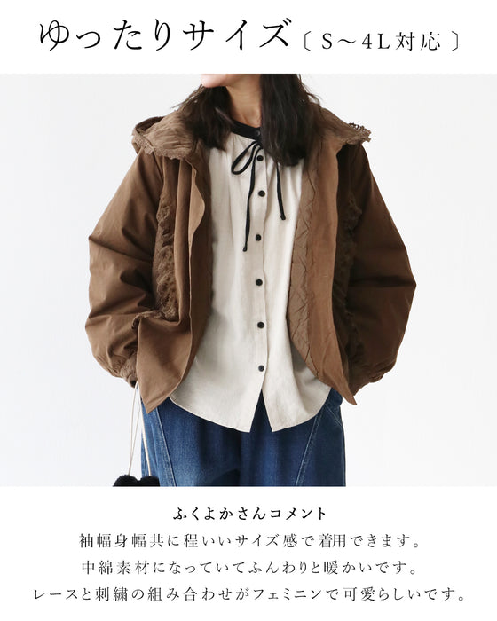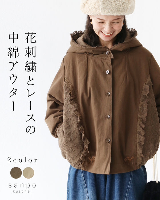花刺繍とレースの中綿アウター