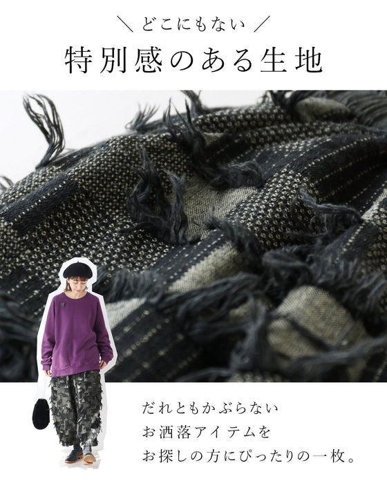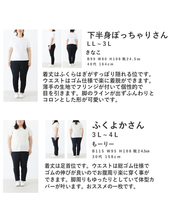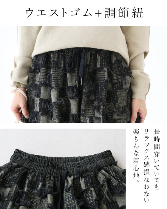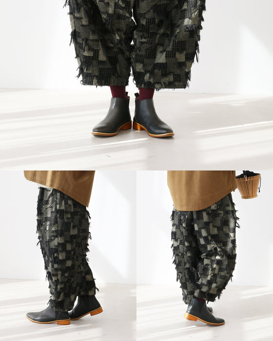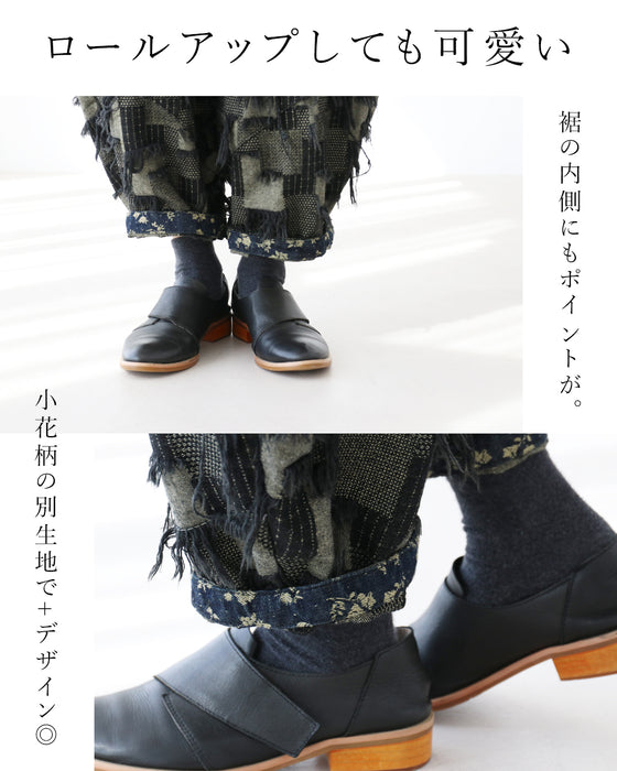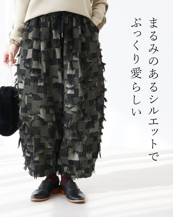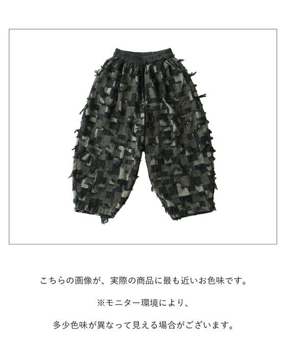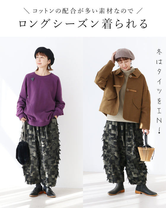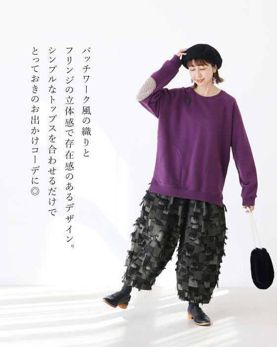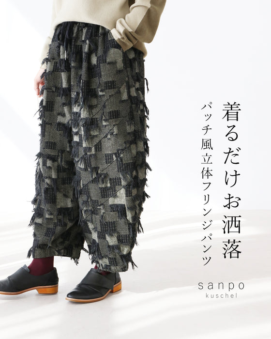 着るだけお洒落 パッチ風立体フリンジパンツ