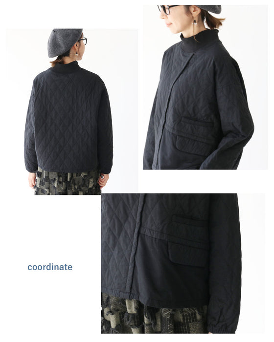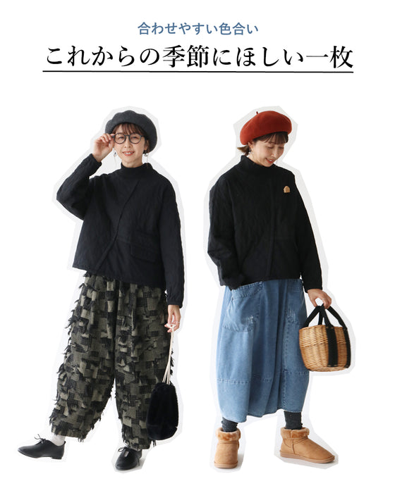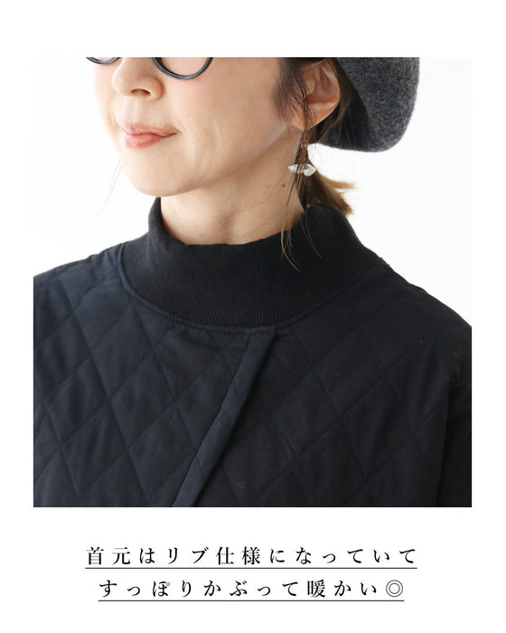 かぶって着られるキルティングの切り替えアシメトップス