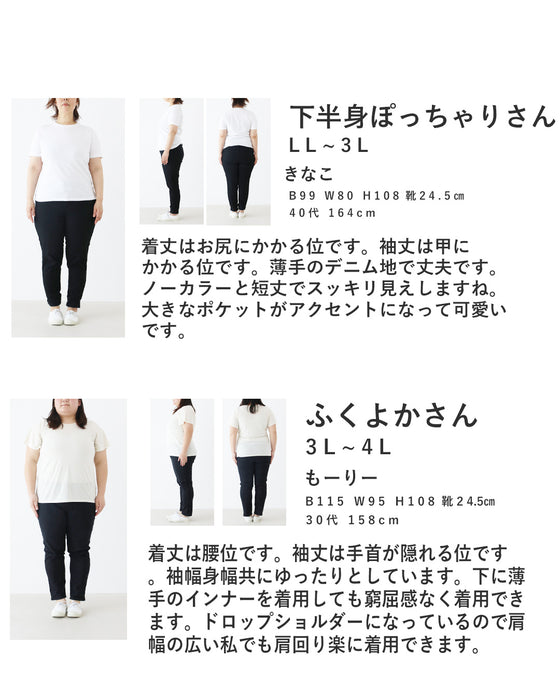 | Size | 肩幅 | 身幅 | 着丈 | 前下がり | 袖丈 | アームホール | 袖口 |