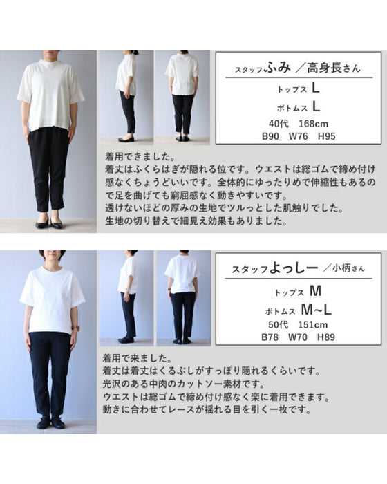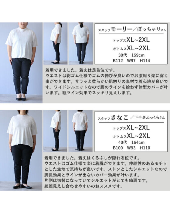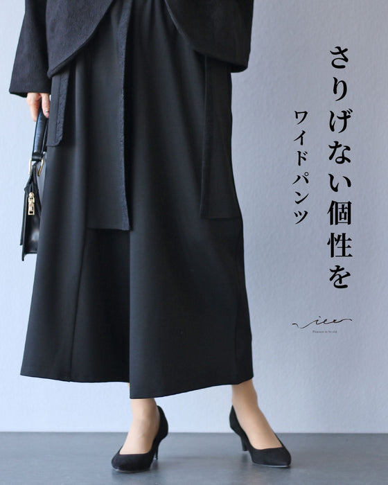 黒のパンツは、どんなトップスとも相性が良く、着回し力抜群。 ゆったりとしたフリーサイズで、 体型をカバーしつつ快適な着心地です。