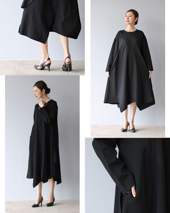 フォーマルからデイリーにも着こなせる黒のワンピースはエレガントな印象を与えてくれます。 お洒落で大人の女性らしいスタイルを楽しみたい方におすすめの一枚です。
