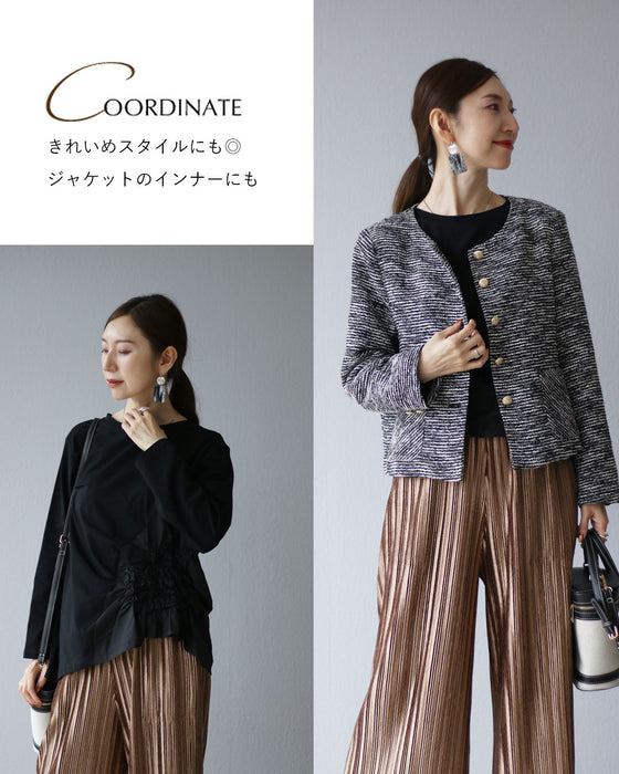 大人の女性にふさわしい、 着やすさとデザイン性を兼ね備えた一着で、日常をより華やかに彩ります。