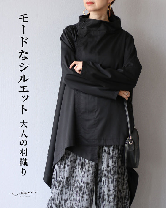 ラフでありながらも、こなれ感のある個性的なデザインが魅力で、開けてもドレープが美しく、着こなしやすいのがポイントです。
