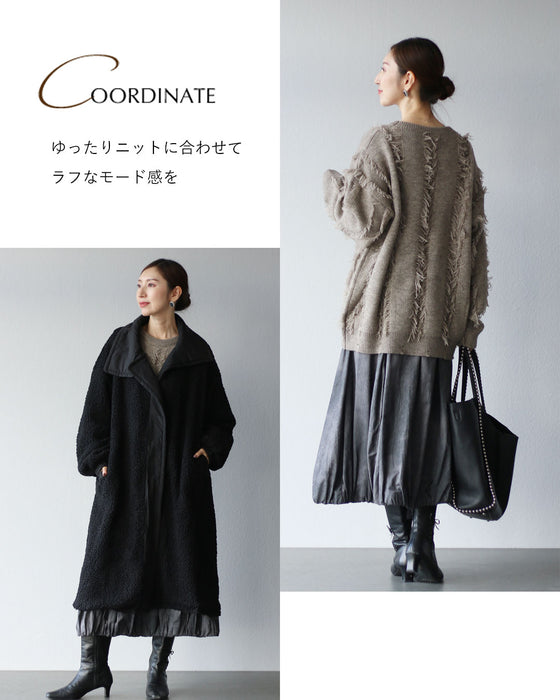 ゆったりとしたフリーサイズで、体型をカバーしつつ、 着回しのしやすさも兼ね備えています。