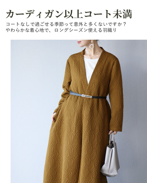 立体的な地模様が美しく、魅力を引き立てます。ゆったりとしたフリーサイズ設計で、 体型をカバーしつつ快適な着心地を提供します。