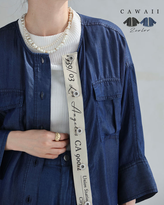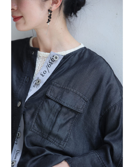 • レタリングライン流れるデニム風くったり柔らかジャケット