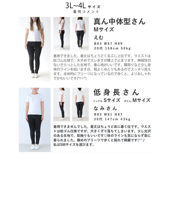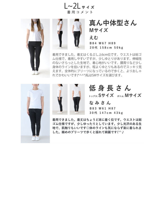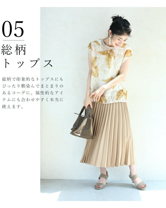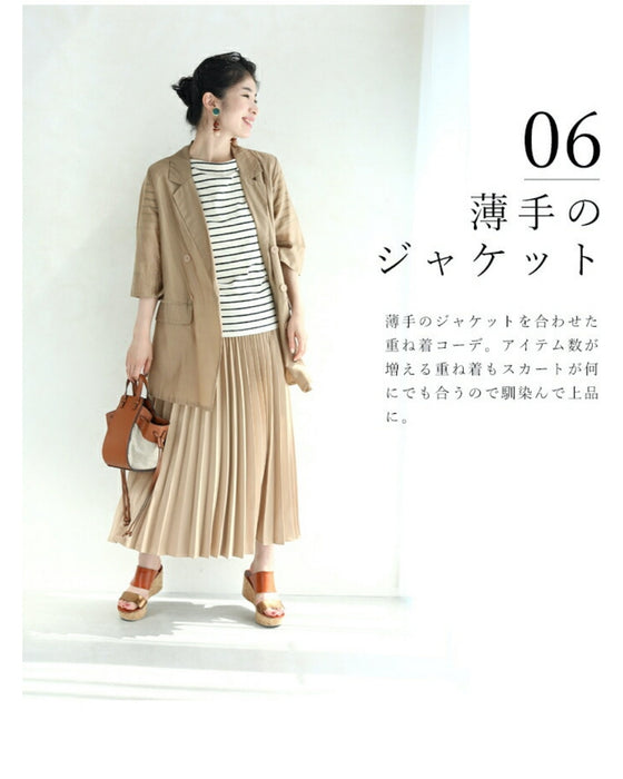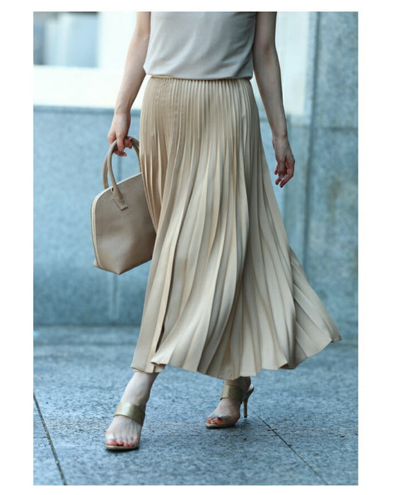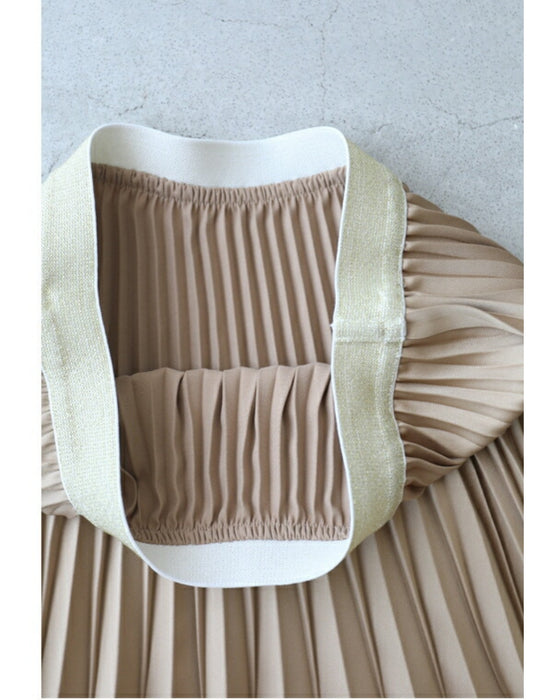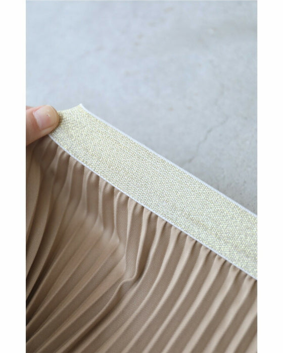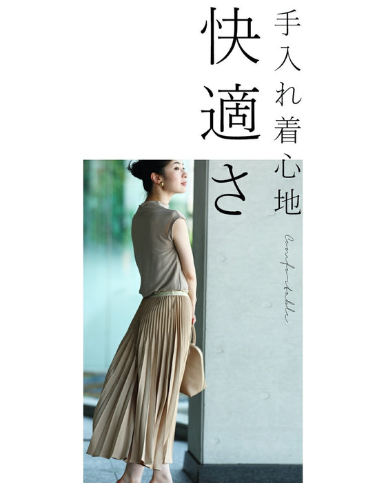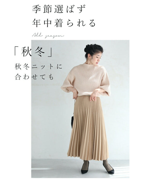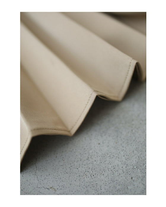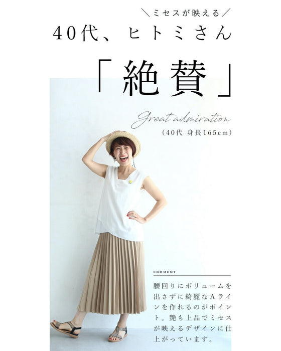 1段目の細かいプリーツは、腰・お腹周りを細かい折り目でボリュームダウン。2段目の大きいプリーツで裾に向かって広がるようボリュームアップ。女性らしいAラインシルエットがエレガントに。