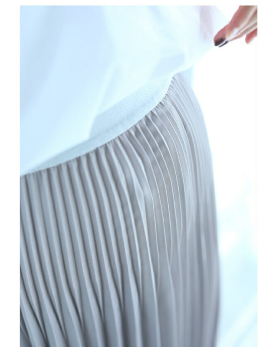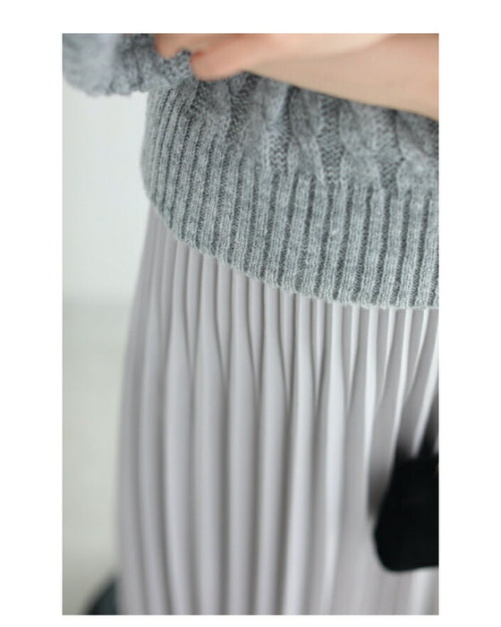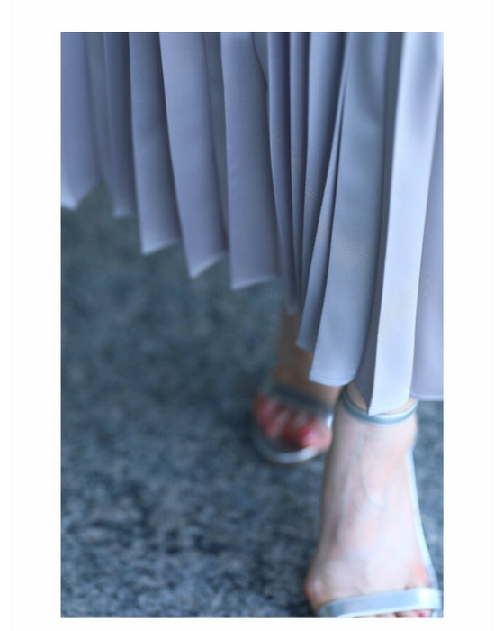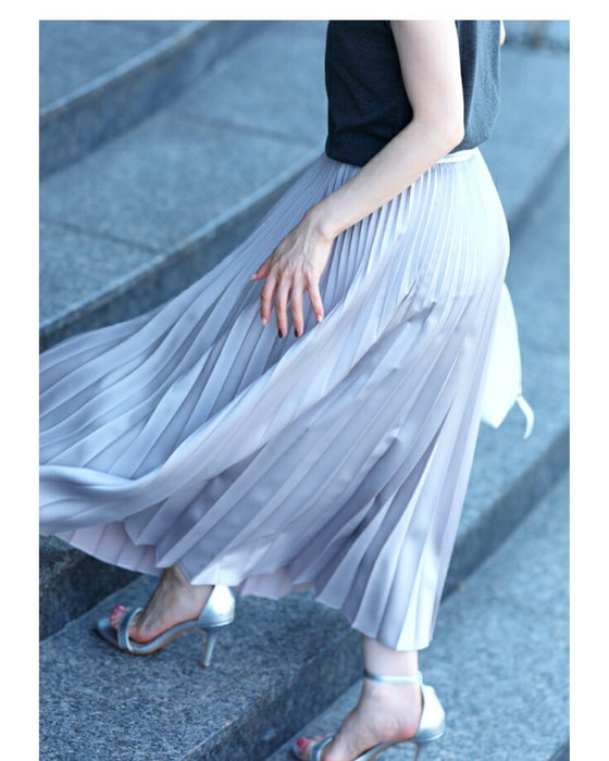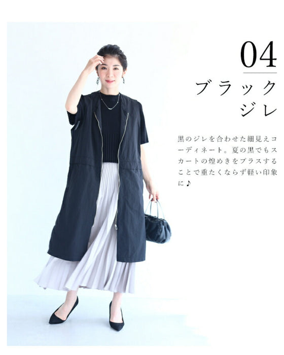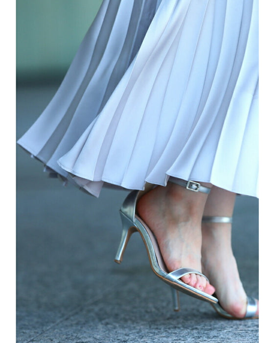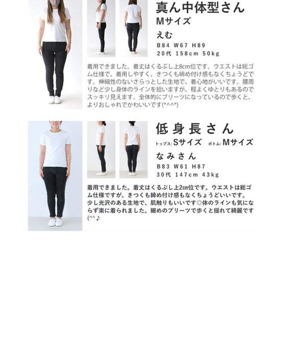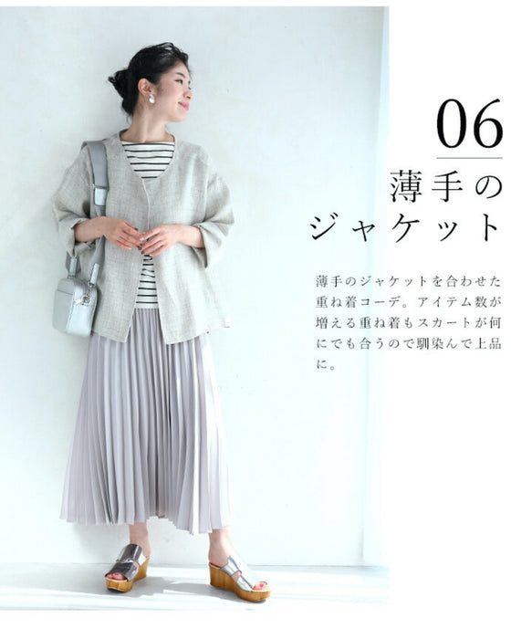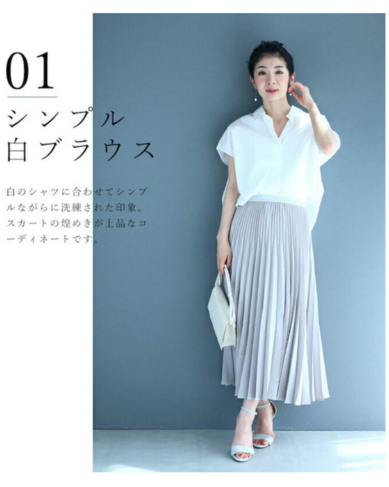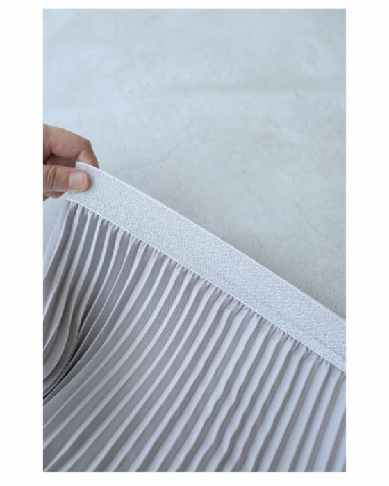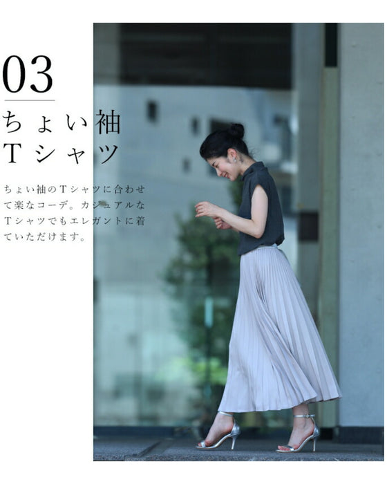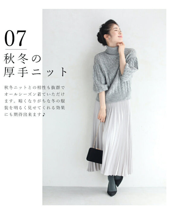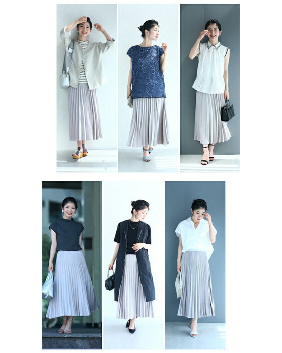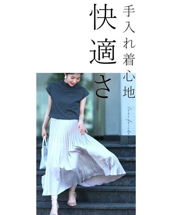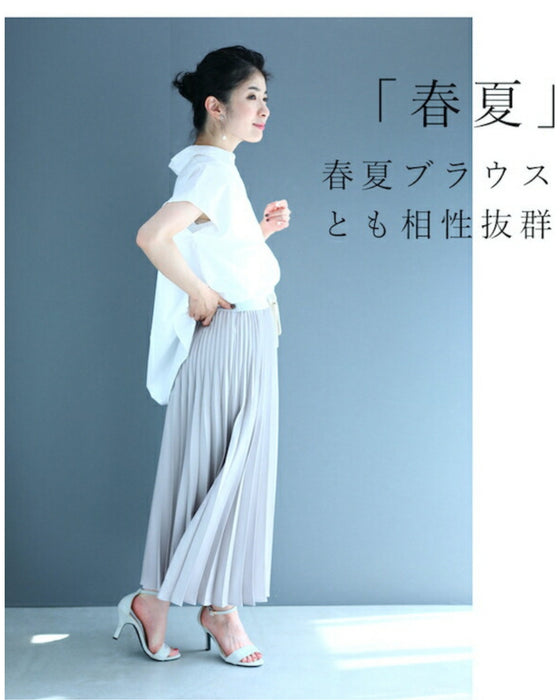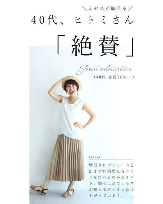 1段目の細かいプリーツは、腰・お腹周りを細かい折り目でボリュームダウン。2段目の大きいプリーツで裾に向かって広がるようボリュームアップ。女性らしいAラインシルエットがエレガントに。
