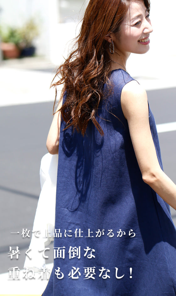 Linen one piece 02 涼しく上質で快適なリネン100%