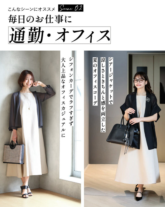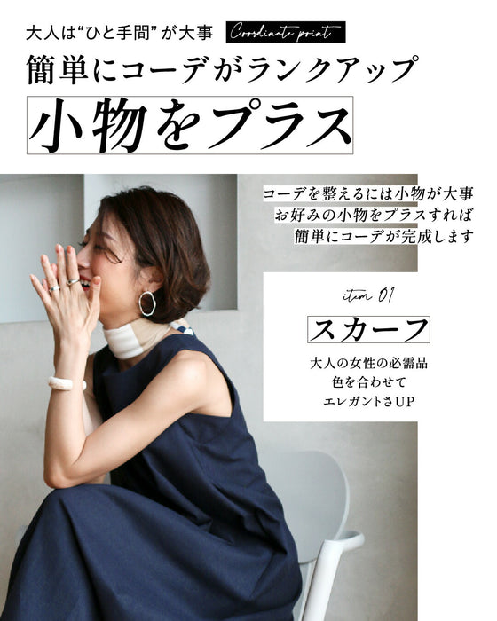 スカーフ、アクセサリー、肩掛けカーデとシンプルだからこそ、アレンジ自在◎