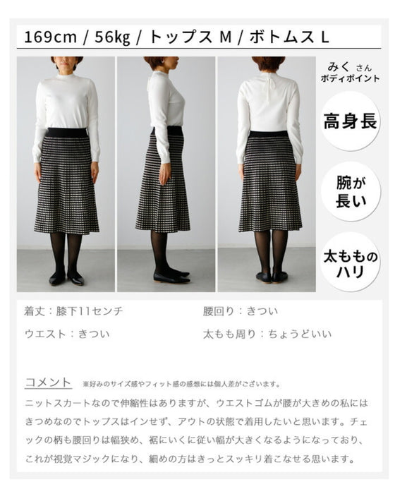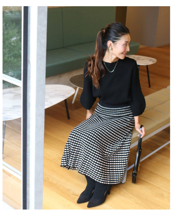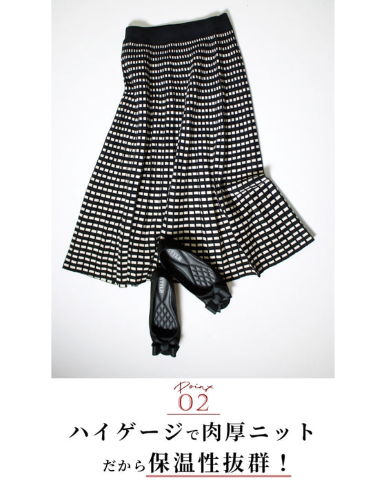 モノトーン 柄 ニット スカート スタイル ウエストゴム ニットスカート 柄物 黒 ブラック アイボリー ハイゲージ ブラック グレー ネイビー 柄スカート 人気 レディース フリーサイズ style エーレスタイル 織り柄 新色 小柄さんもOK Ehrestyle