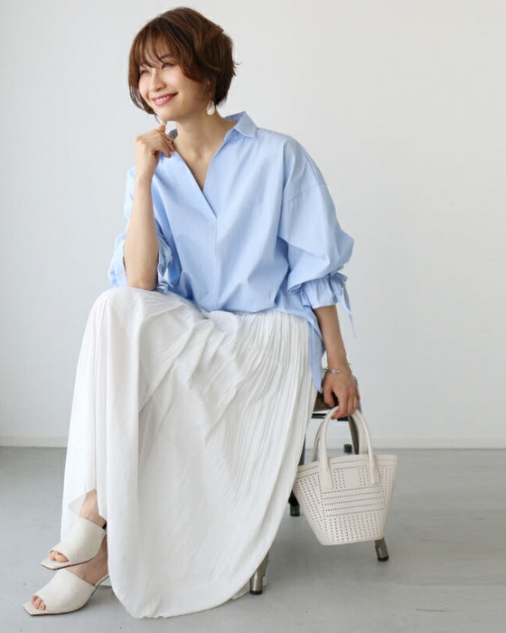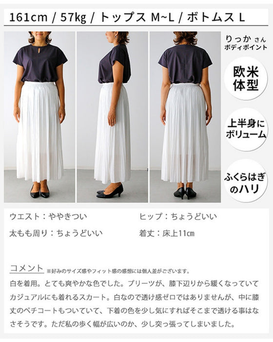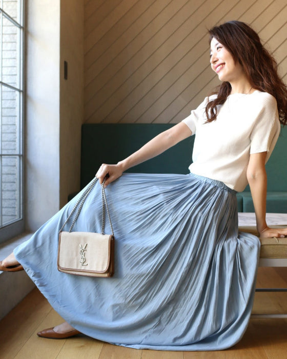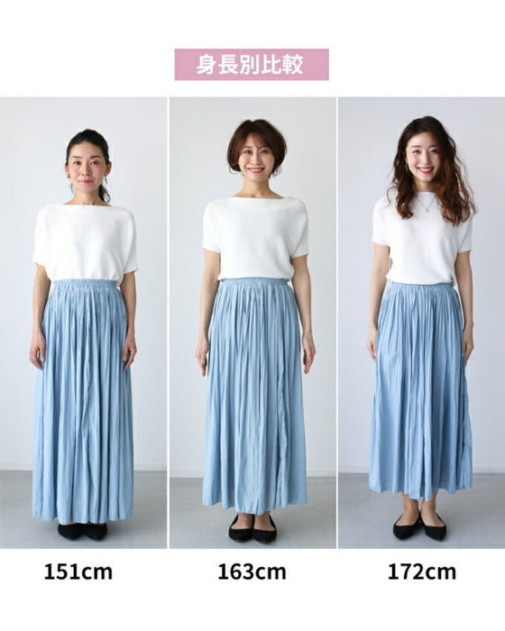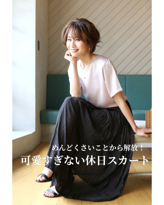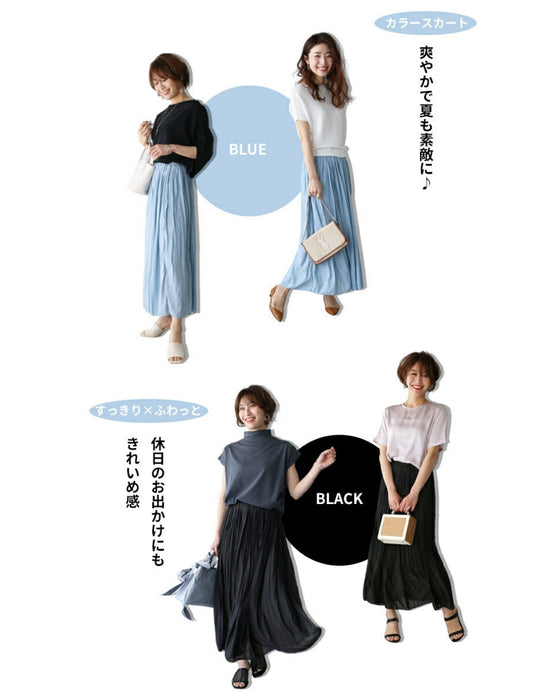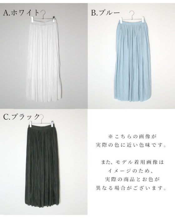 スカート ボトム ブラック ブルー ホワイト 白 黒 青 ウエストゴム とろみ 艶 微光沢 トレンド ワッシャー加工 裏地 落ち感スカート Ehre style スタイル エーレスタイル 春 夏 小柄さんもOK Ehrestyle