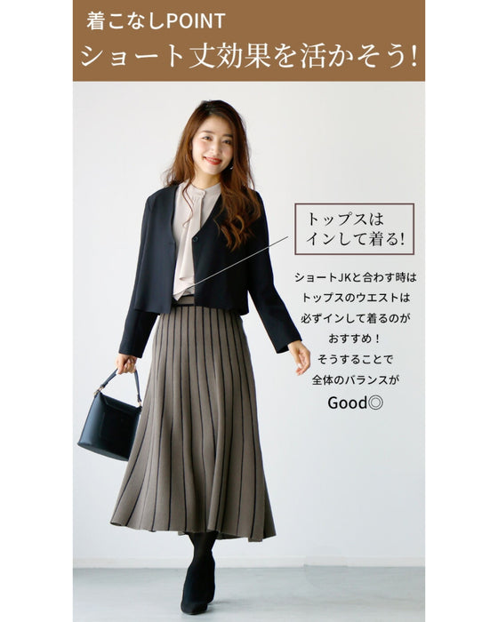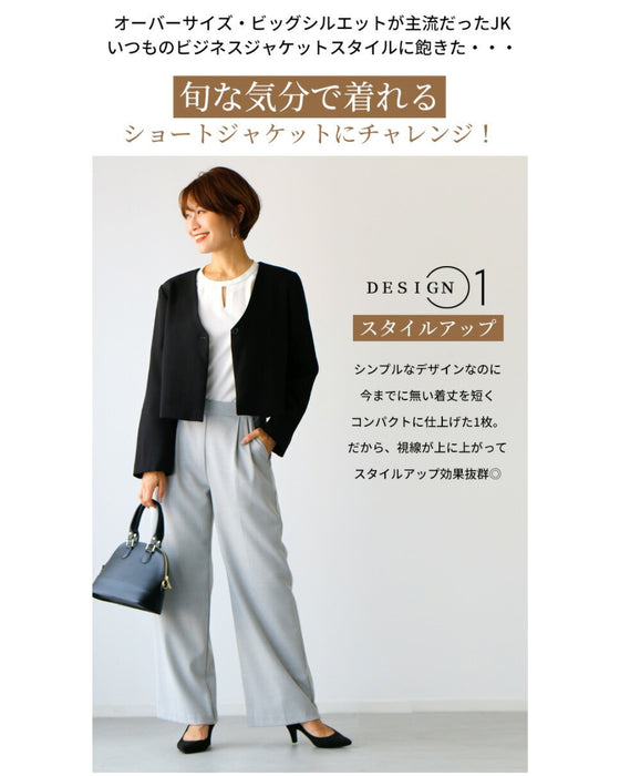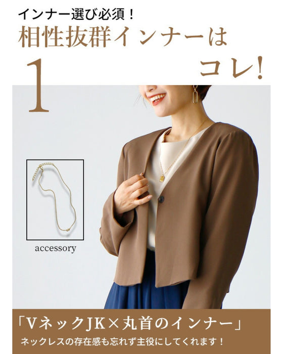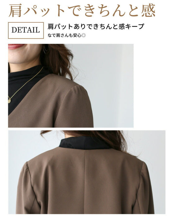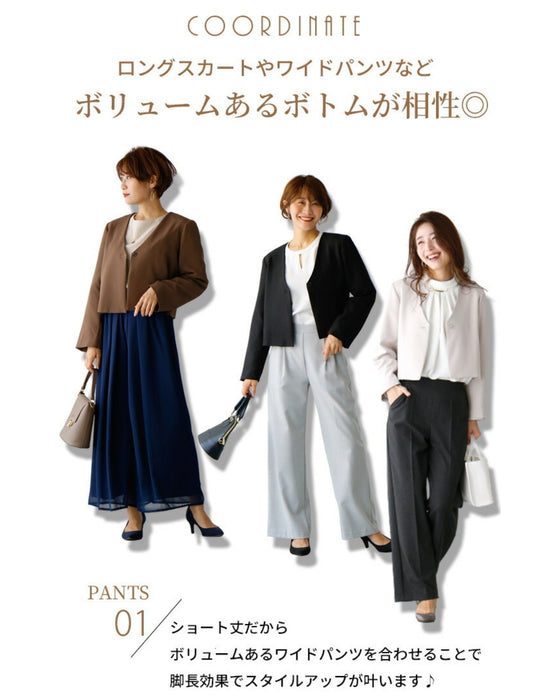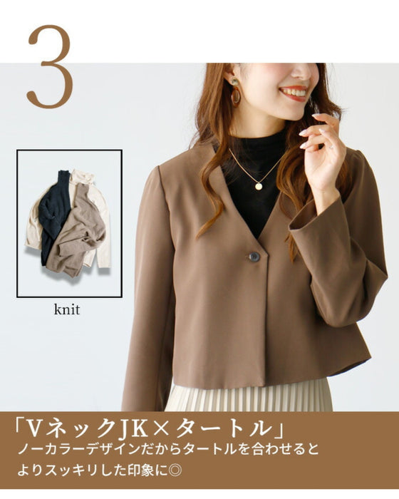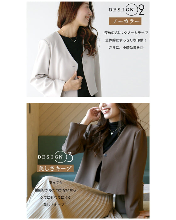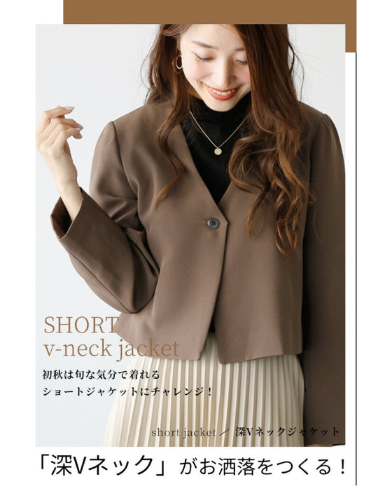 ジャケット ショート丈 Vネック デザイン 長袖 ノーカラー お手入れも簡単 ブラック ブラウン グレージュ肩パット 羽織り 小柄さんもOK Ehrestyle フリーサイズ Ehre style スタイル エーレスタイル 春