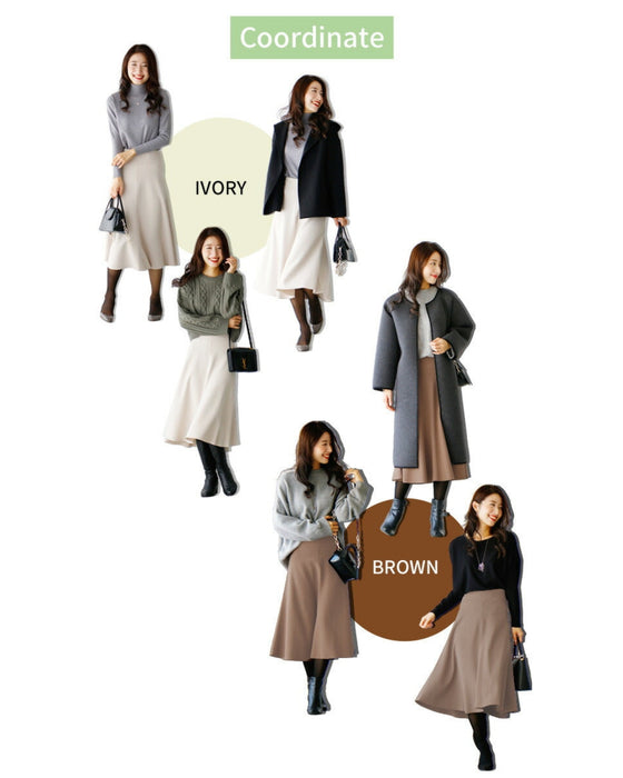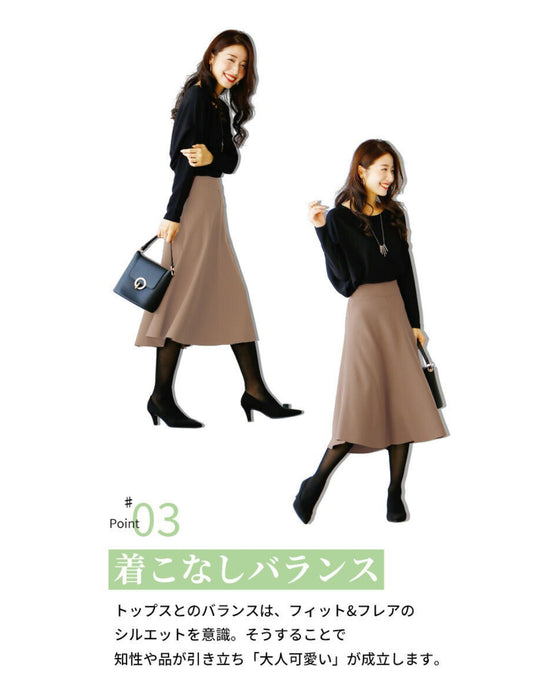 スカート フレアスカート フレア 窮屈感なし きれいめ 落ち感 センターライン 大人可愛い アイボリー ブラウン ブラック 白 茶 黒 着回し シンプル 無地 レディース フリーサイズ Ehre style エーレスタイル 秋 冬 小柄さんもOK Ehrestyle