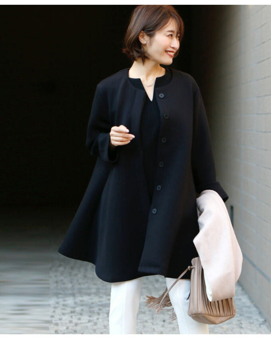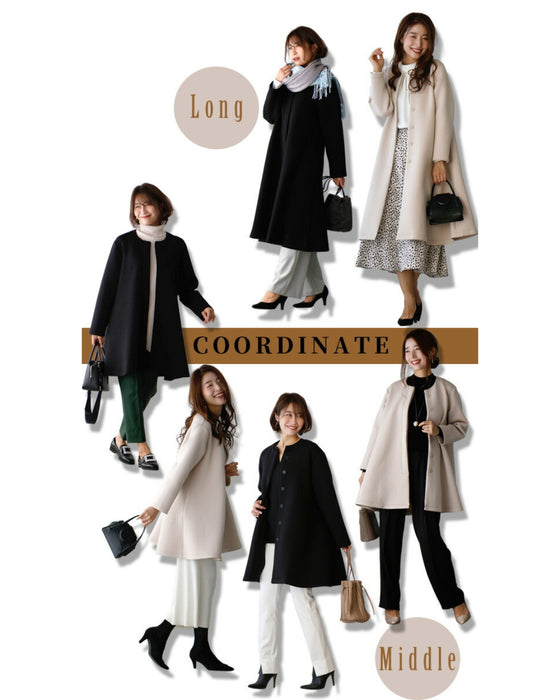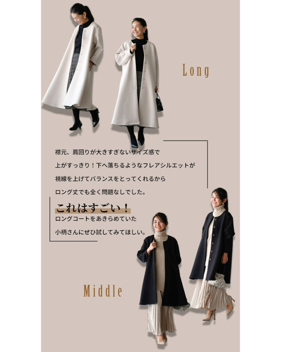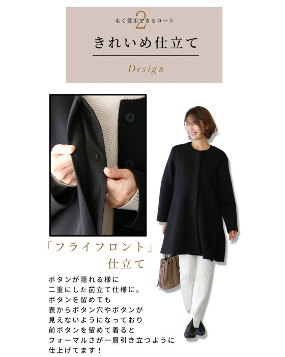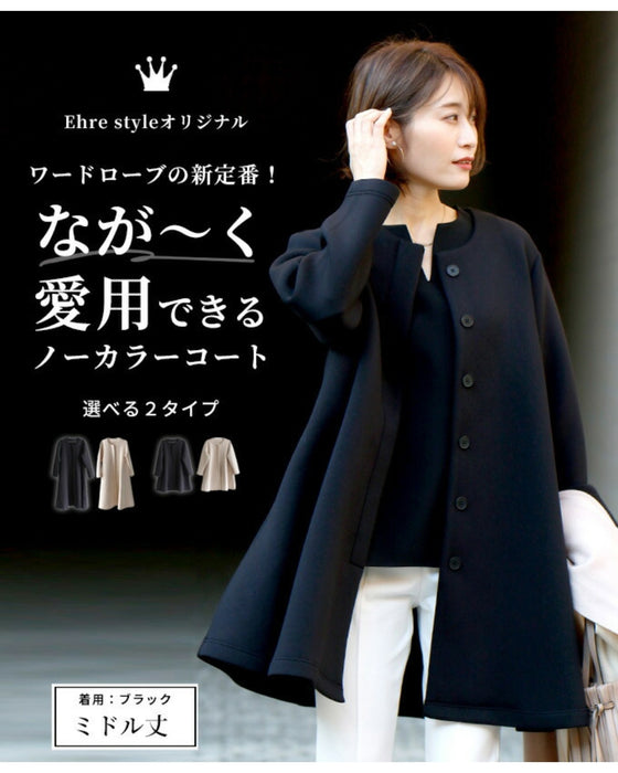 コート レディース フレアライン フライフロント ボタン秋冬 春 軽い きれいめ 大きいサイズ ノーカラーコート アウター ミドル丈 ロング丈 羽織り コート 長袖 ゆったり ボンディング ブラック ベージュ Ehre style 小柄さん