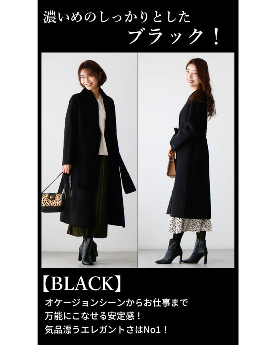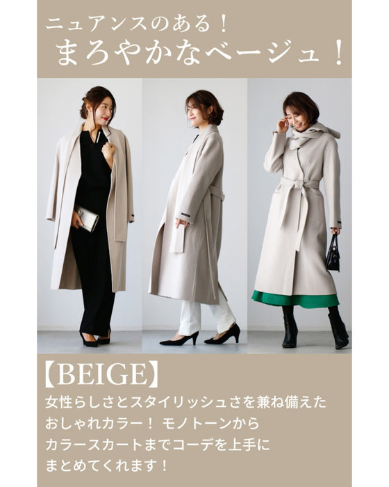 コート レディース 40代 冬 アウター きれいめ 羽織 ロングコート マフラー付き シンプル ストレート ロング丈 上質 ハンドメイド 裏地あり ベージュ ブルー ブラック 青 黒 オケージョン 仕事 休日 Ehrestyle Ehre style スタイル エーレスタイル 秋 冬