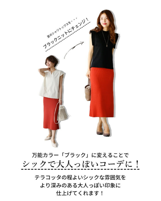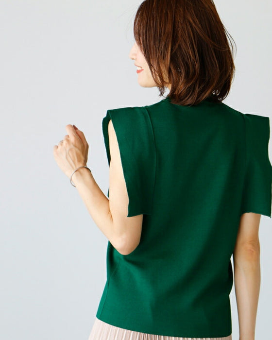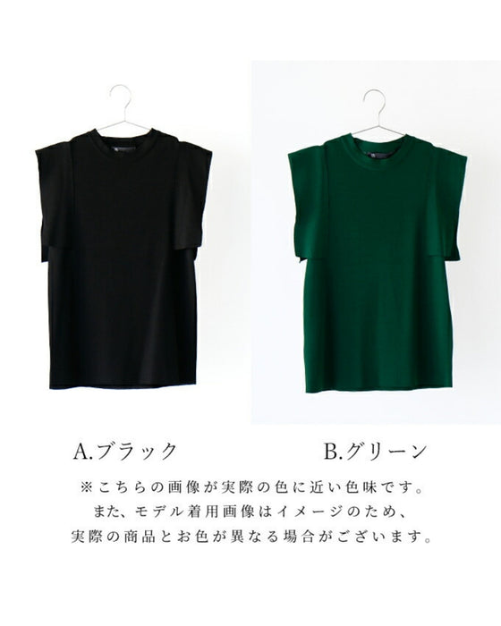 トップス 半袖 ニット 着やせ ノースリーブ ノースリ ノースリニット フレンチ 無地 デザインニット 細見え 体系カバー ヘルシー ローネック サマーニット グリーン ブラック 緑 黒 夏 秋 Ehre style スタイル エーレスタイル 春 夏 秋 小柄さんもOK Ehrestyle フリーサイズ